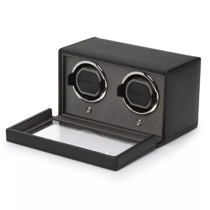 Wolf Cub Double Watch Winder 2 ure Sort Imiteret Læder 461203